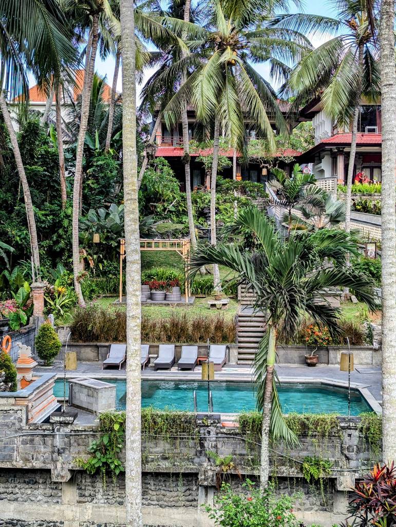 We arrived in Ubud and checked into Artini Dijiwa Ubud. We were overwhelmed by how big and beautiful the hotel was for the price. The grounds were so tranquil, with lush gardens, quiet paths, and peaceful pools. Our room had a private terrace overlooking the pool and gardens, perfect for unwinding after the journey.