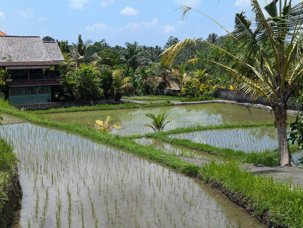 We flew into Ngurah Rai International Airport (DPS) near Denpasar and had a pre-booked taxi to Ubud. The drive should take about an hour and a half, but it ended up taking over two hours because it was a local holiday, with lots of extra traffic. It was a fun way to get our first glimpse of Bali’s busy, vibrant side.