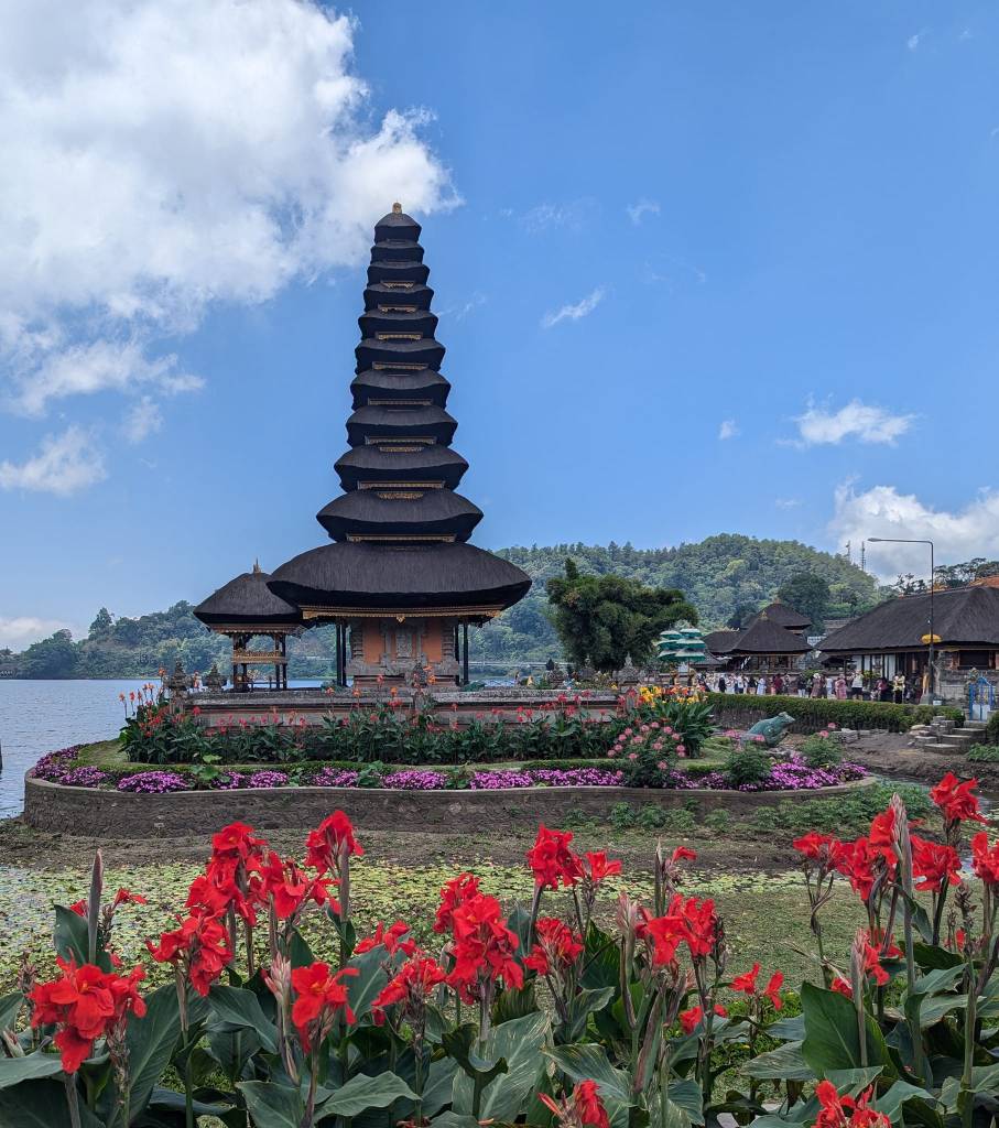 Finally, Ulun Danu Beratan Temple, the one you always see in holiday guides, sitting beautifully on Lake Beratan. The temple was stunning, and the beer there was cheap, which was a nice surprise — Bali doesn’t always have inflated tourist prices where you’d expect them. We even took a small speedboat around the lake.