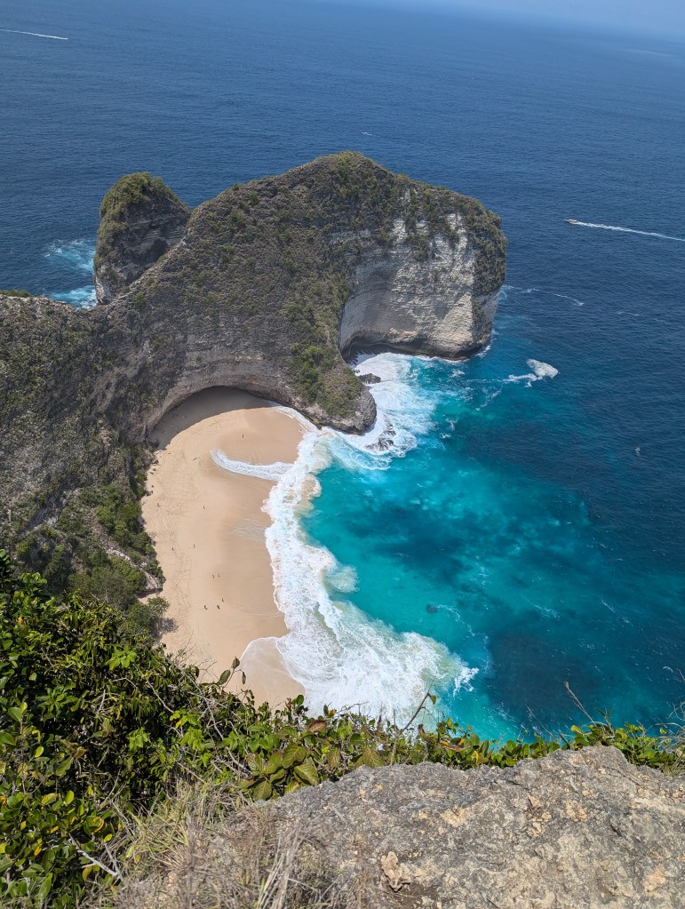 Kelingking Beach: This is the famous T‑Rex shaped cliff viewpoint, where the rock formation juts out into the sea in a way that looks a bit like a dinosaur head — absolutely breathtaking from above. The hike down to the beach itself is very steep and challenging, so we admired the views from the top instead of going all the way down.