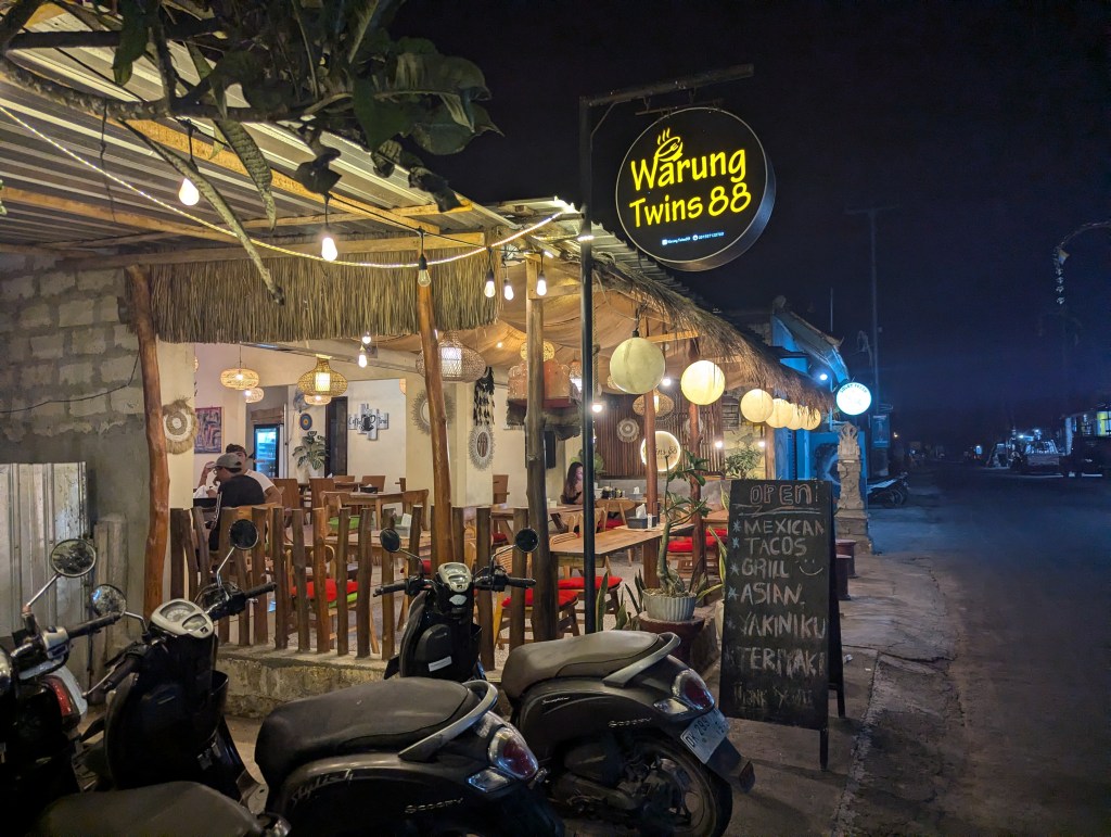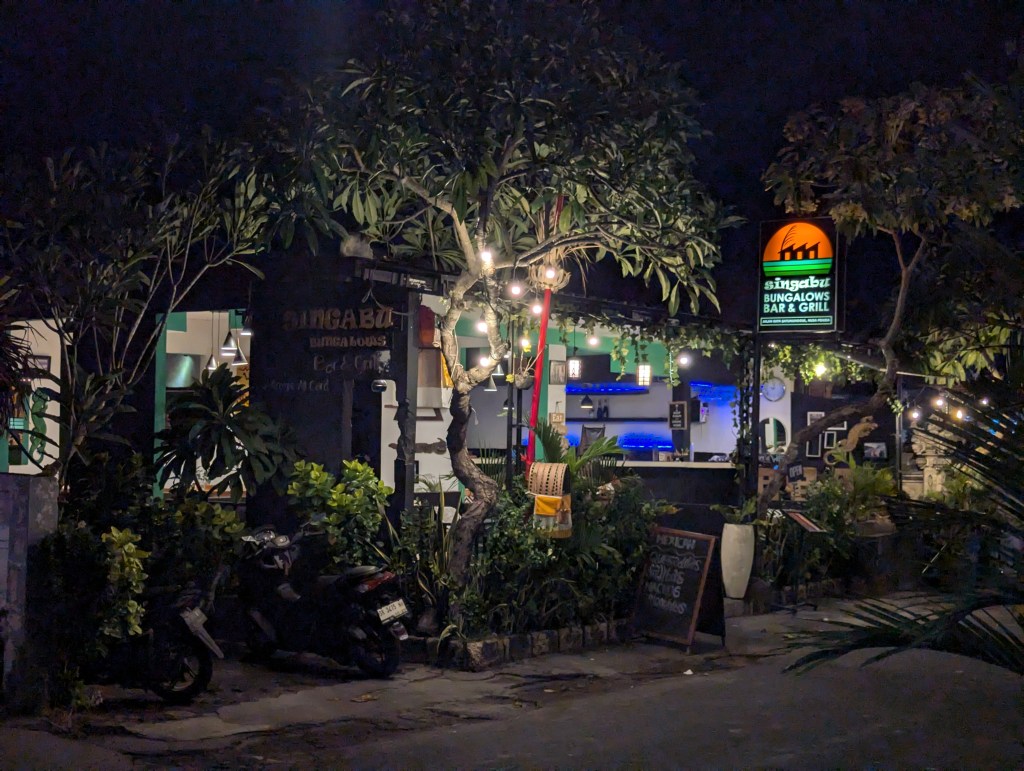 That evening, we wandered over to Otokafe, a nearby bar with live music, for a drink and some satay, served on BBQs at the table. It was cheap, tasty, and a perfect way to ease into our trip.