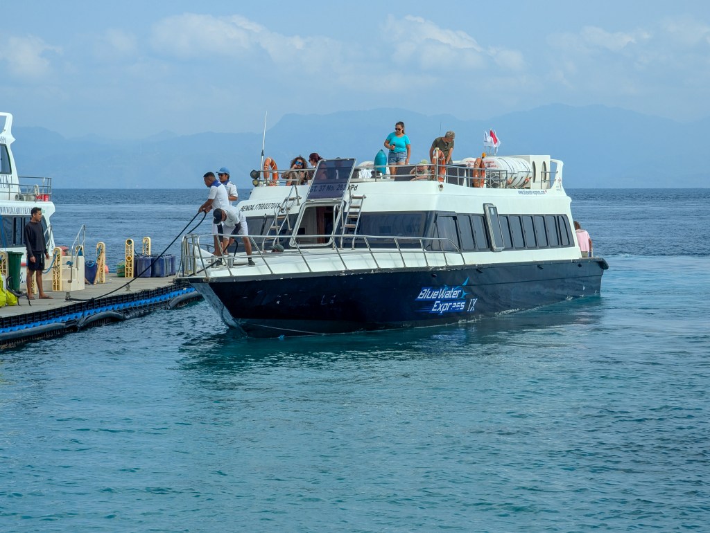 On our final day, we took the Gili Getaway boat all the way to the Padangbai ferry terminal near the airport. After the peaceful boat ride over to the island from Nusa Penida, we did wonder what the towels on the deck were for, but we soon found out — as we had our second experience of waves splashing over our heads.