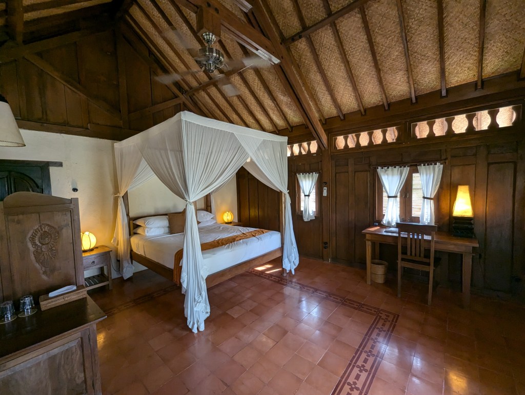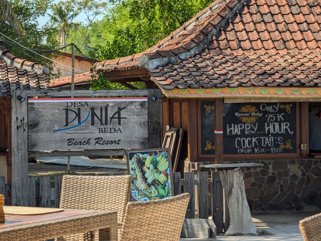 We stayed at Desa Dunia Beda Beach Resort, a beachfront resort on the quieter side of the island, and we absolutely loved it. The bungalows were spacious, with lovely big terraces, perfect for sitting and enjoying a beer in peaceful tranquility